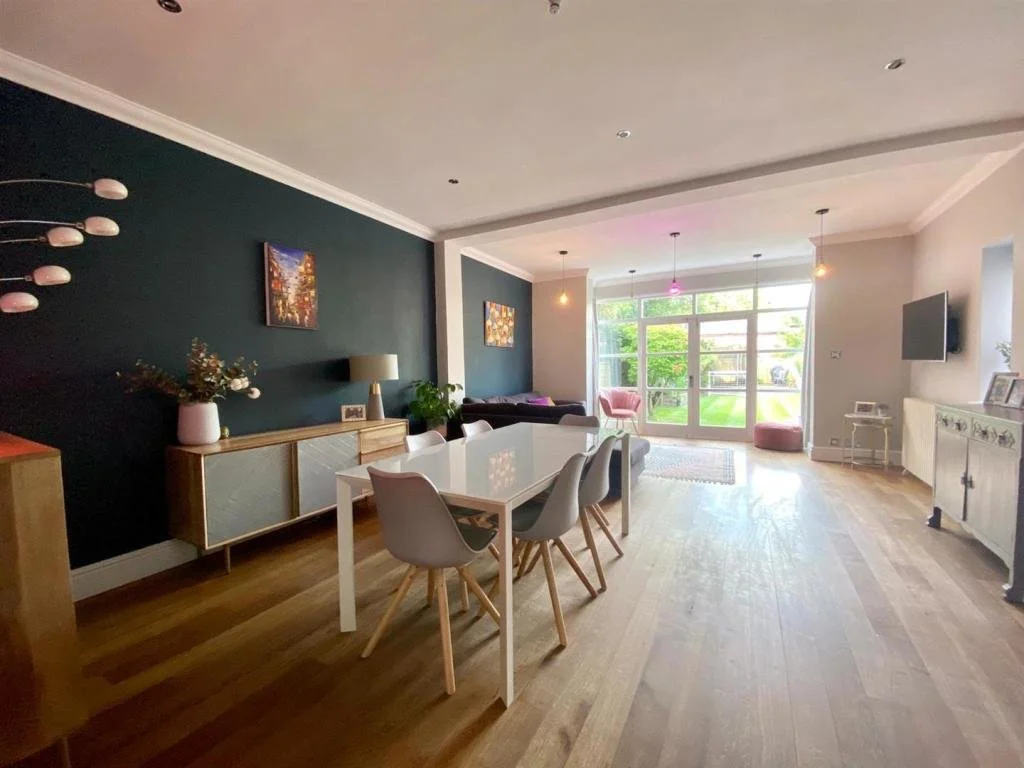 Internally, the kitchen is relocated closer to the garden, replacing the old dark heart of the plan with a light-filled social hub. The former kitchen zone is repurposed to house practical amenities: a boot room, utility, cloakroom, and accessible WC. A relaxed lounge area now sits between the dining space and kitchen, which benefits from new large-scale rooflights above. This addition along with enlarged side openings, draws light deep into the plan and lifts the previously oppressive interior.