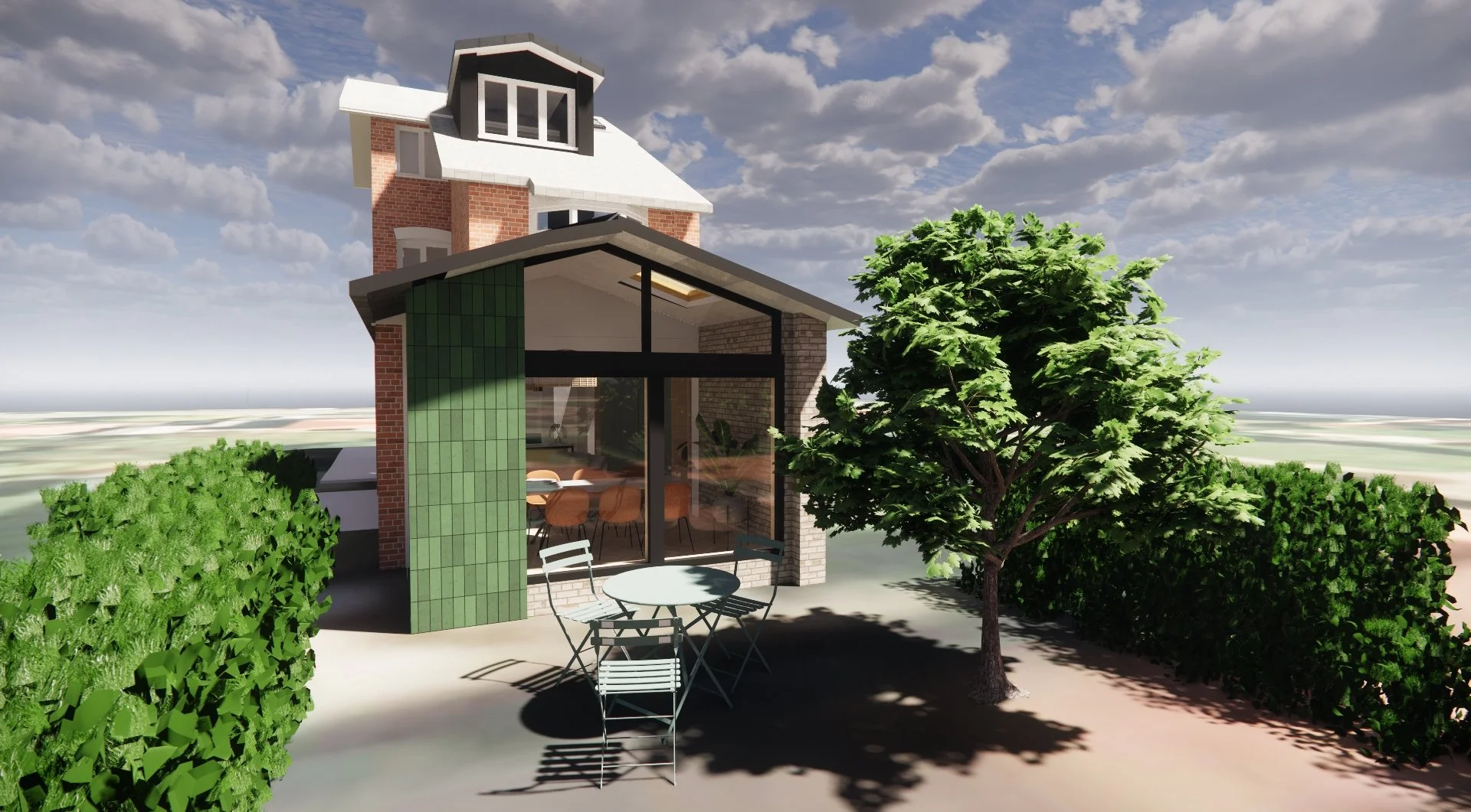 The new proposal reorients the home around a vaulted dining pavilion that projects into the garden, establishing a bold yet elegant connection between interior and exterior. Glazing to two sides floods the new volume with daylight, while glazed brick—used both inside and out—dissolves the boundary between house and landscape, creating a tactile continuity throughout.