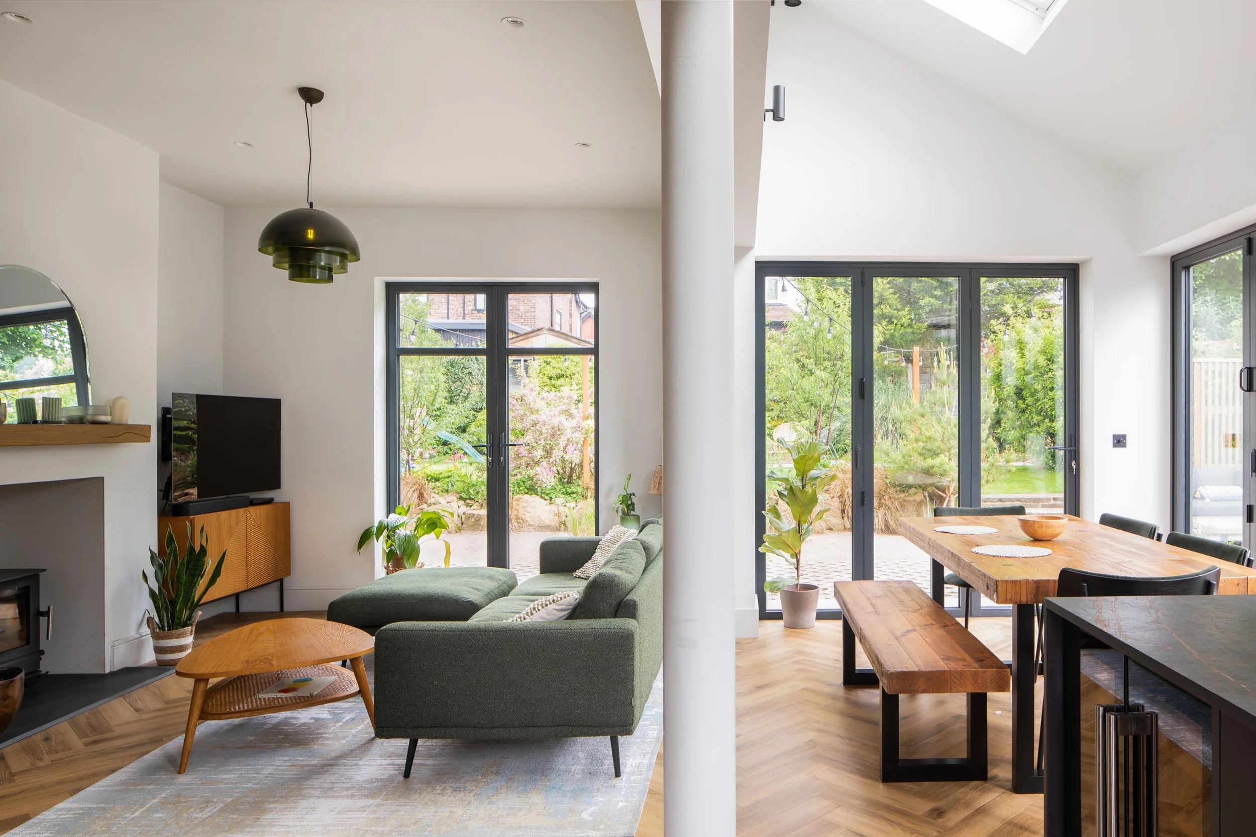 To create a light and airy living space, the additional glazing tracks light throughout the day. Privacy is ensured as the extension steps back, meaning it is barely visible from the street scene.